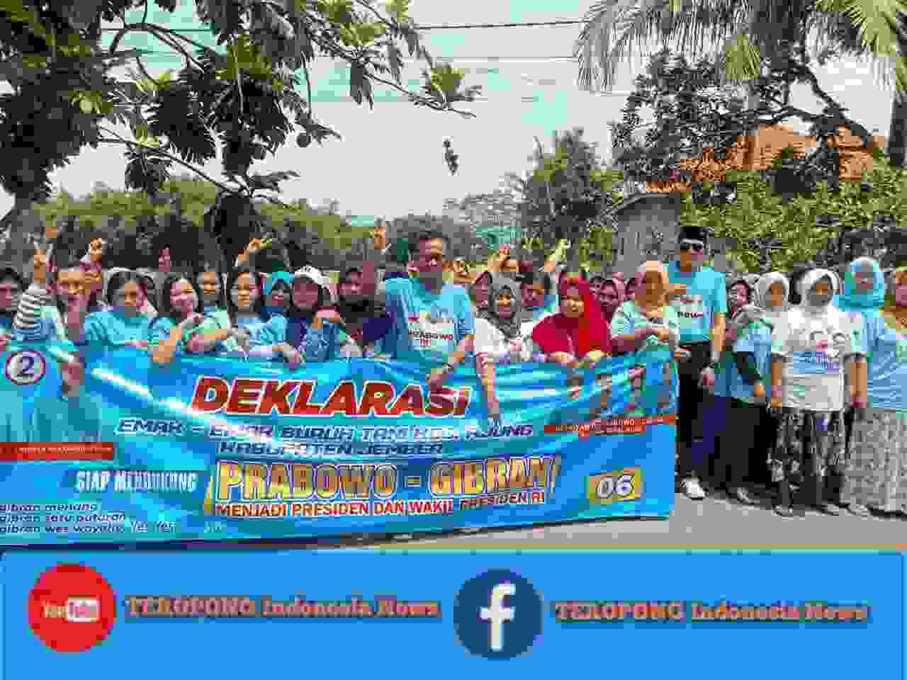 Jember,Tim relawan pemenangan pasangan calon presiden nomer 02 yaitu Prabowo -Gibran menggelar deklarasi pemenangan didesa pancakarya yang dihadiri oleh ketua tim pemenangan Edi Sudarto dan rekan seprofesinya bersama warga setempat.