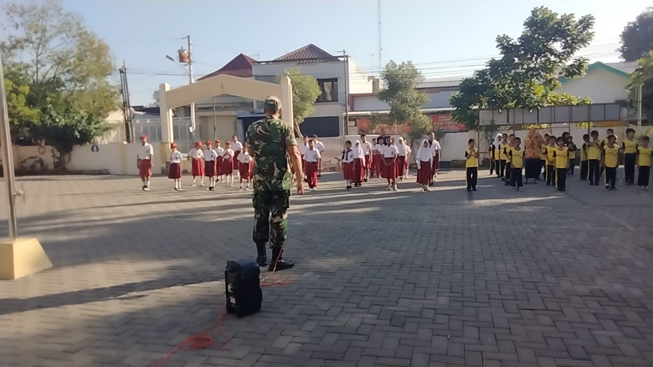 Surakarta, Pembinaan wilayah yang dilakukan oleh Se Orang Aparat Teritorial Dalam Hal Ini Bati Wanwil Sersan Mayor Yudhi Widianto Koramil 03 / Serengan Kodim 0735 / Surakarta memberikan kontribusi di lembaga Pendidikan di SDN Kawatan Di Jln. Honggowongso No. 39 Tipes Kel. Tipes Kec.Serengan Pada Hari Selasa tgl 07 Mei 2024 Pukul 07.30 Wib