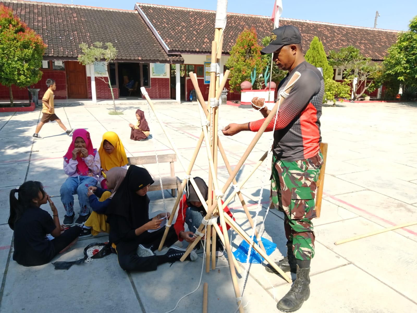 Seperti yang dilaksanakan Prajurit TNI Pratu Mardiman yang tergabung dalam Satgas TMMD yang berasal dari Batalyon Infanteri Raider 408/Subhrasta ini, tampak Pratu Mardiman sedang melatih anak-anak Pramuka SD Negeri Wirun 5 dengan kemampuan dasar Pramuka yaitu tentang materi tali temali. Pratu Mardiman dengan sabar menyampaikan cara membuat Tiang bendera dengan bahan tongkat dan tali Pramuka.