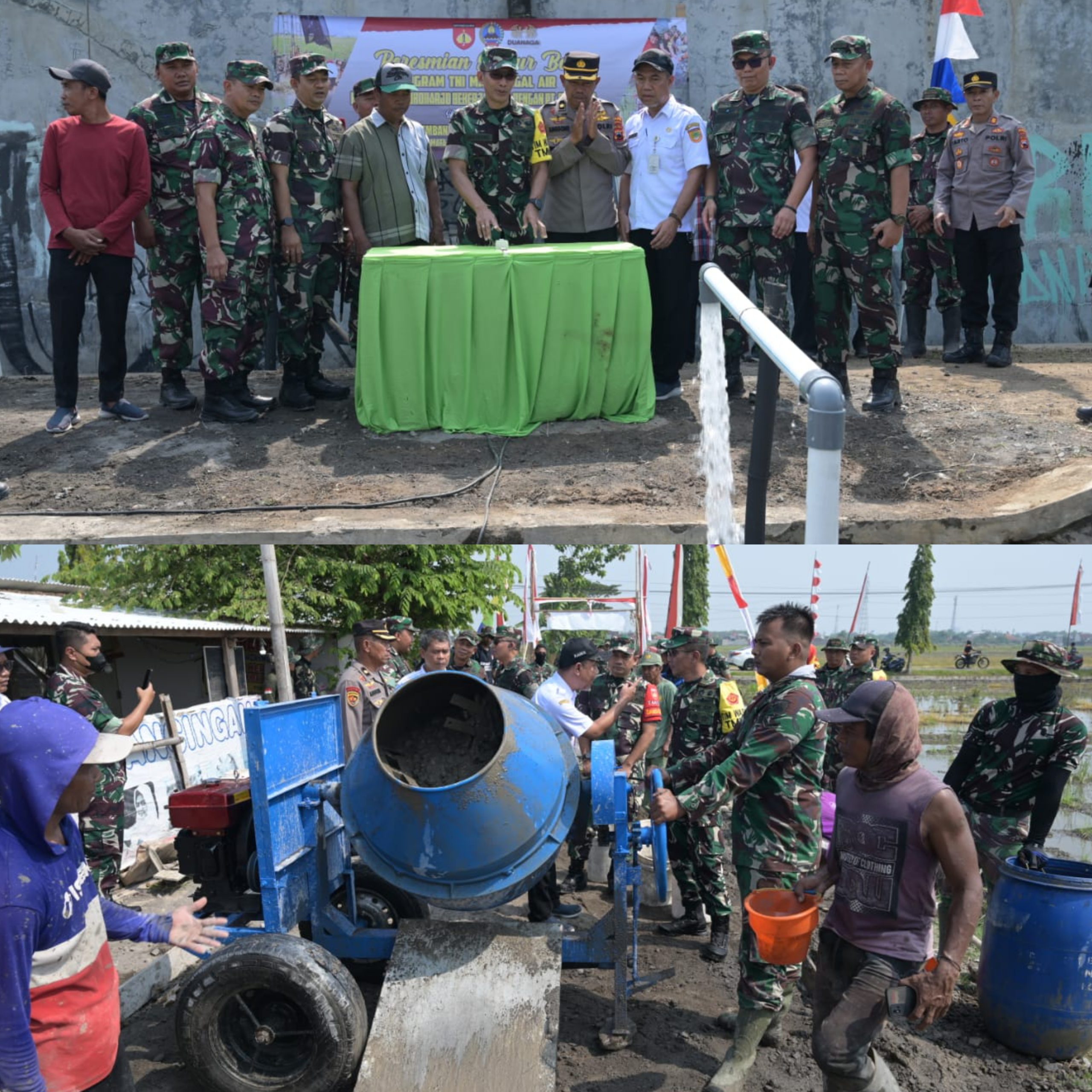 “Satu Sumur Bor yang sudah jadi ini ditargetkan dapat mengairi areal persawahan seluas 55 hektar milik 135 orang petani dari beberapa Kelompok Tani yang dapat menerima manfaatnya, dalam hal ini kita akan buat 3 titik lokasi di persawahan, 1 titik di pondok pesantren dan 1 titik lagi kita buat di Masjid jadi totalnya ada 5 titik sumur bor yang kita buat untuk mendukung Program TNI AD Manunggal Air ini”, terang Dansatgas TMMD Letkol Czi Slamet Riyadi, S.E.