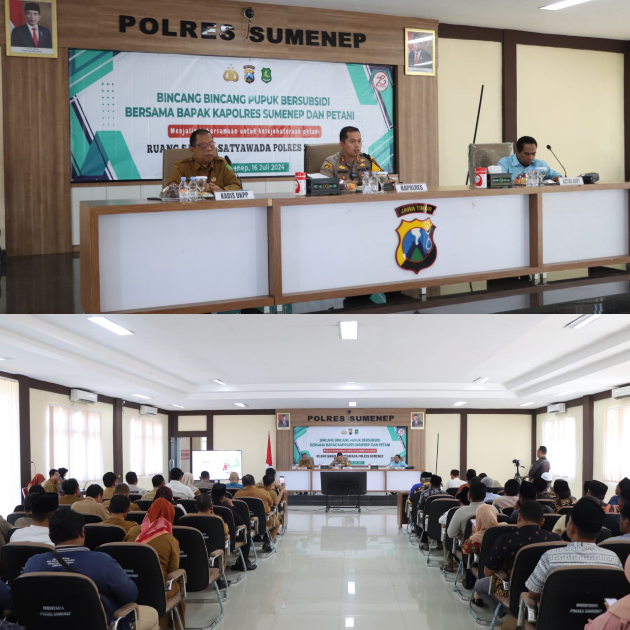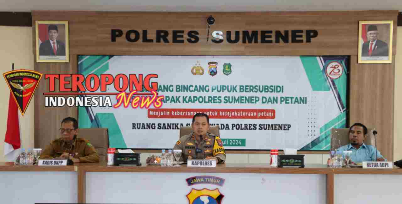 Sumenep – Polres Sumenep menggelar kegiatan Bincang-Bincang Pupuk Bersubsidi bersama para petani di Lantai II Gedung Sanika Satyawada Polres Sumenep, Selasa, 16 Juli 2024. Kegiatan ini merupakan upaya Polres Sumenep untuk menjalin kebersamaan dan meningkatkan kesejahteraan petani di Kabupaten Sumenep.