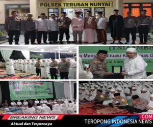 Lampung Tengah – Dalam rangka menjaga situasi ketertiban dan keamanan masyarakat (Kamtibmas) dan menuju Indonesia Emas, Kepolisian Sektor (Polsek) Terusan Nunyai, gelar Dzikir Akbar Polres Lampung Tengah bersama Lintas Agama bertempat di halaman Mako Polsek setempat. Rabu malam Kamis, 24 Juli 2024.