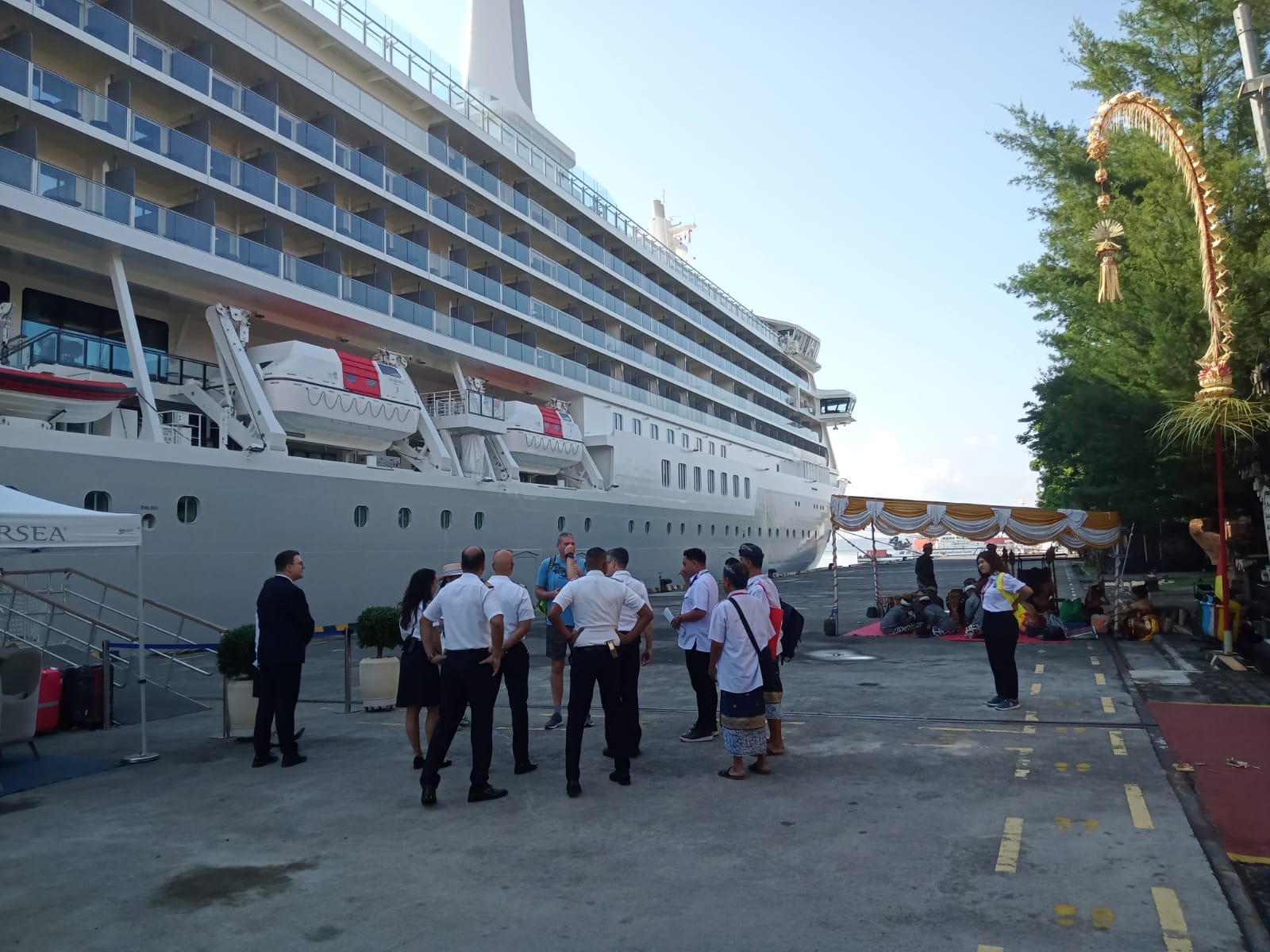Pagi ini Selasa tgl (5/11)pkl 07.00 wita, Kapal Pesiar MV. Silver Nova berlabuh di terminal international pelabuhan Benoa mengangkut ratusan wisatawan asing yang akan berlibur di pulau Bali dan langsung mendapat pelayanan pengamanan dari Personil Polsek Benoa dan stake holder pelabuhan Benoa lainnya.