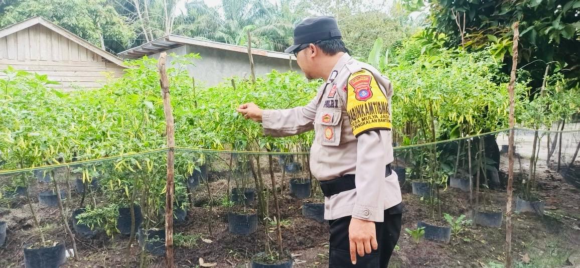 Pengecekan ketahanan pangan milik Warga Desa Mulya Jadi dengan Jenis Tanaman Cabe yang berada dilahan sekitaran pekarangan rumahnya. Melalui kegiatan ini Polres Kobar beserta jajarannnya bertekad mendukung program Presiden RI terkait kegiatan ketahanan pangan.