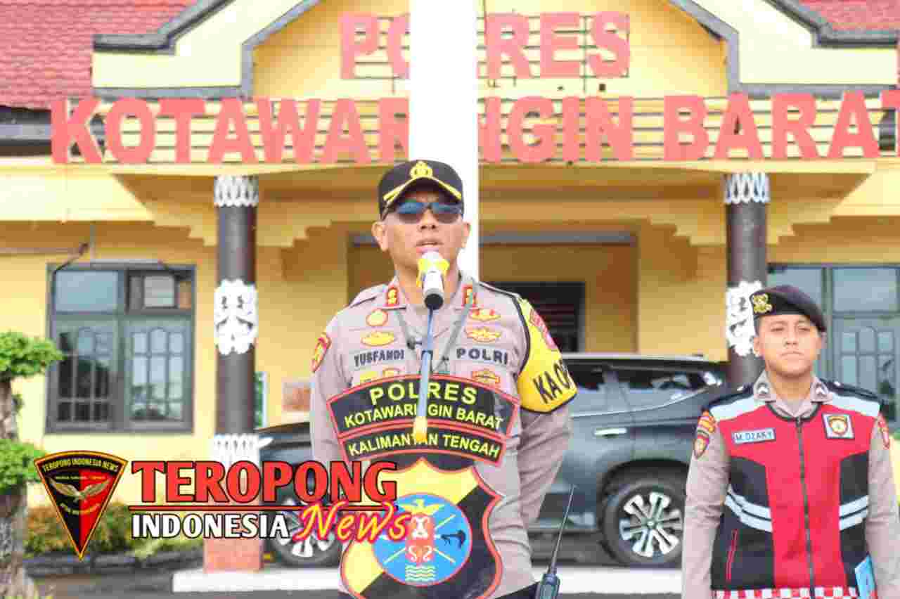 Polres Kobar – Kapolres Kotawaringin Barat (Kobar) AKBP Yusfandi Usman, S.I.K., M.I.K., meminpin apel pagi yang berlangsung di halaman Mapolres Kobar, Rabu (13/11/2024).