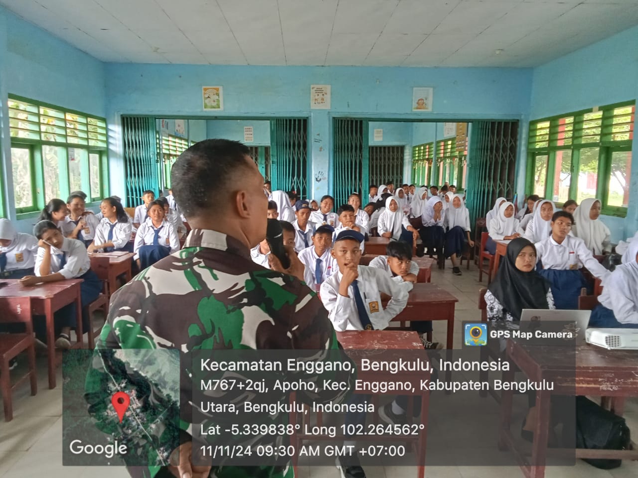 Bengkulu Utara – Dalam rangka memperingati Hari Pahlawan Nasional, Satgas Pengamanan Pulau Terluar (Pam Puter) Enggano melaksanakan program kegiatan “Army Go To School” di SMPN 17 Bengkulu Utara yang berada di Kecamatan Enggano, Kabupaten Bengkulu Utara pada hari Senin, 11 November 2024.