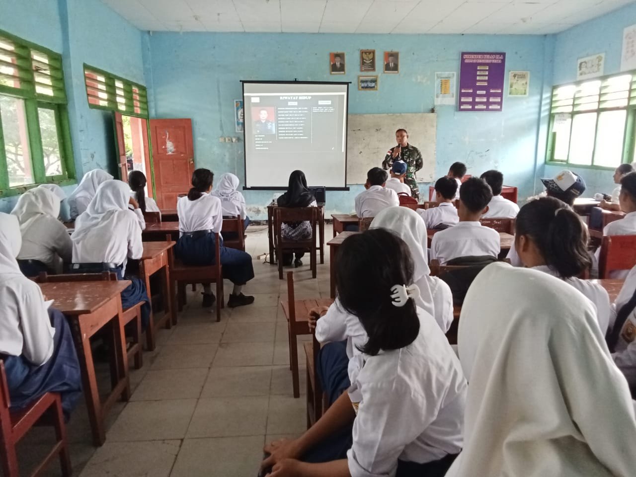 Selesai Upacara Penaikan Bendera Merah Putih, kegiatan dilanjutkan dengan pemberian materi Wawasan Kebangsaan dan Bela Negara oleh Danton Satgas Pam Puter Kapten Inf Lilik kepada 130 orang siswa-siswi kelas VII s.d IX SMPN 17 Bengkulu Utara.