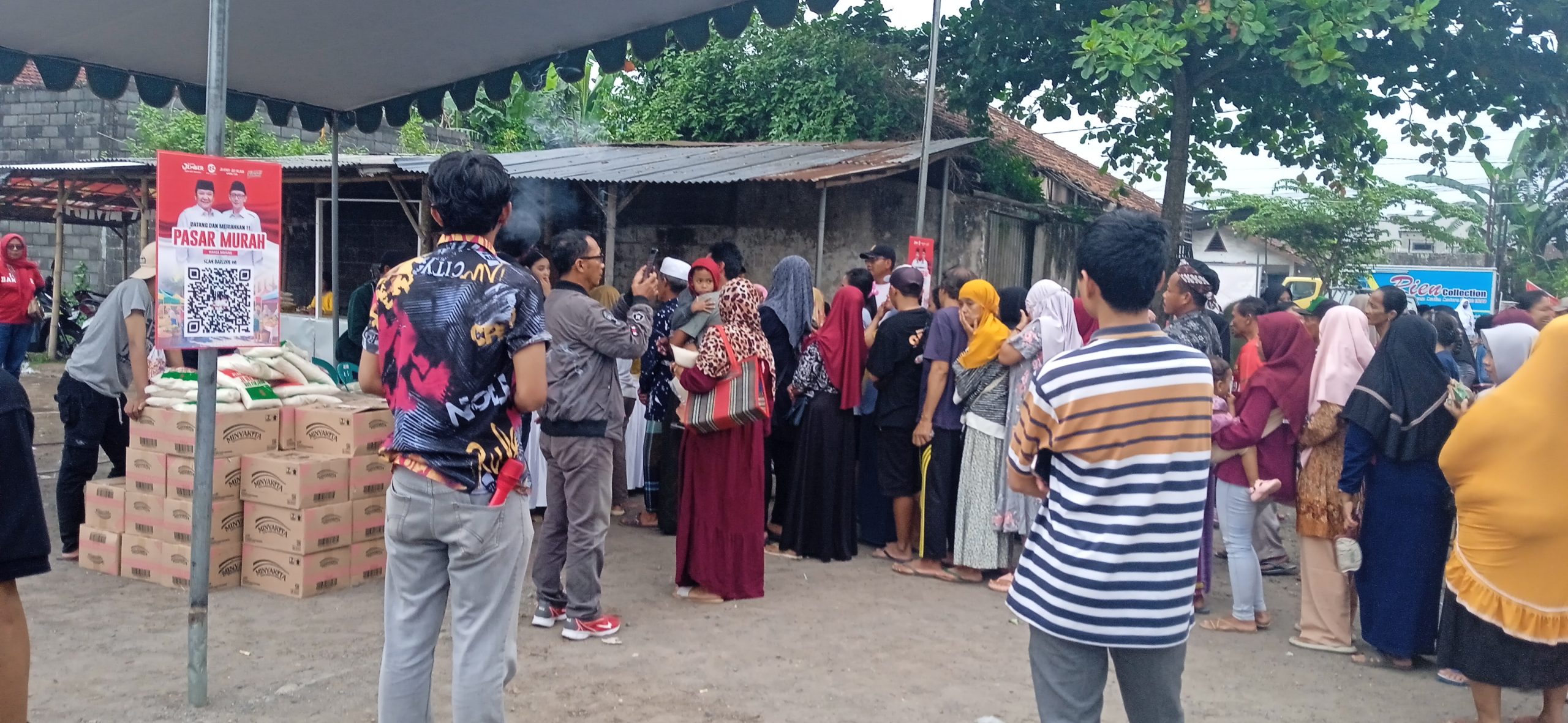 Pasar murah tersebut diselenggarang oleh Paslon 01 untuk masyarakat agar bisa membeli bahan pokok dengan harga yang murah,