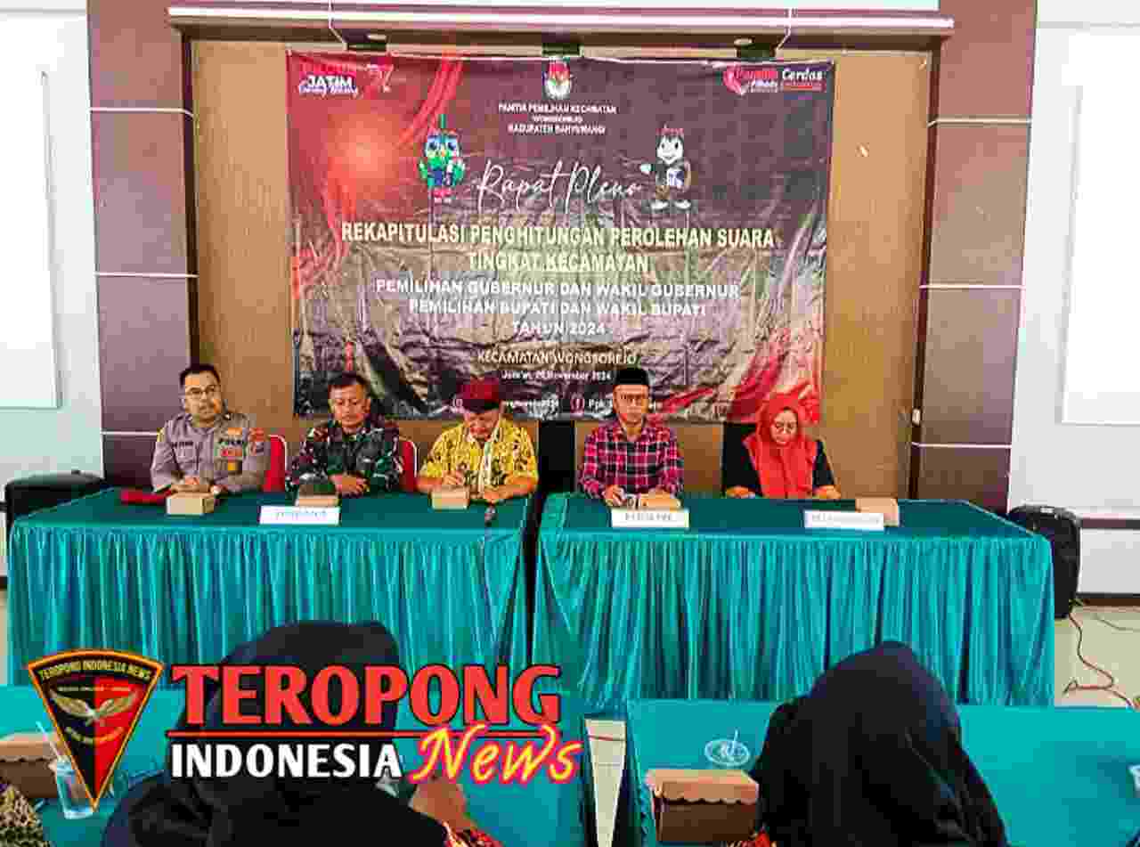 Banyuwangi – bertempat di Pendopo Kecamatan wongsorejo kabupaten Banyuwangi telah dilaksanakan Rapat Pleno Rekapitulasi Hasil Penghitungan Perolehan Suara PEMILU Serentak Pilkada 2024 di Tingkat Jumat,29/11/2024