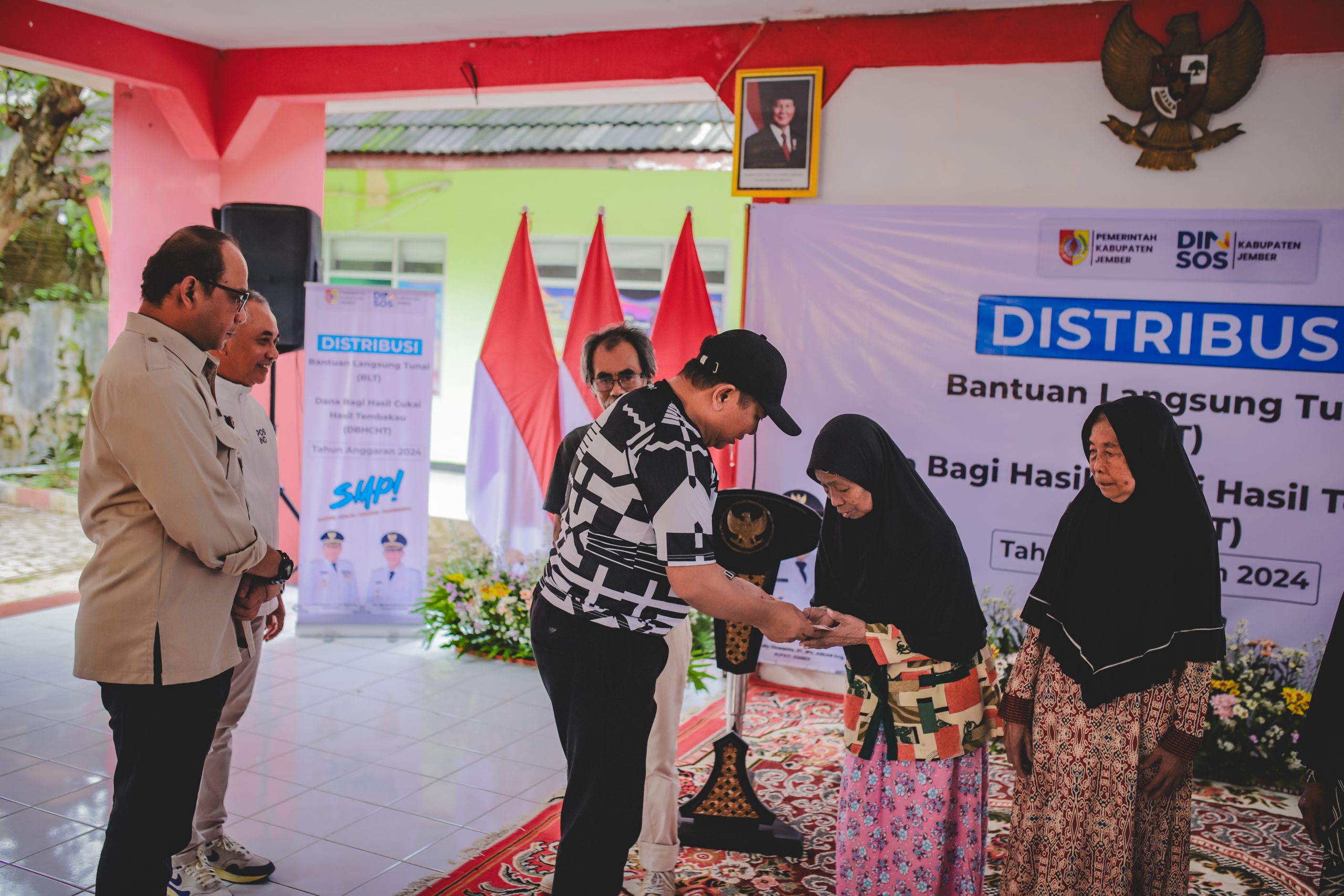 Bertempat di Kantor Kelurahan Jember Kidul, Bupati Hendy membagikan bansos berupa bantuan langsung tunai (BLT) yang bersumber dari Dana Bagi Hasil Cukai Hasil Tembakau (DBHCHT) senilai total Rp.29 miliar untuk 73 ribu lebih masyarakat kurang mampu se-Kabupaten Jember, yang mana masing-masing akan menerima sebesar Rp.400 ribu, Sabtu 7 Desember 2024.