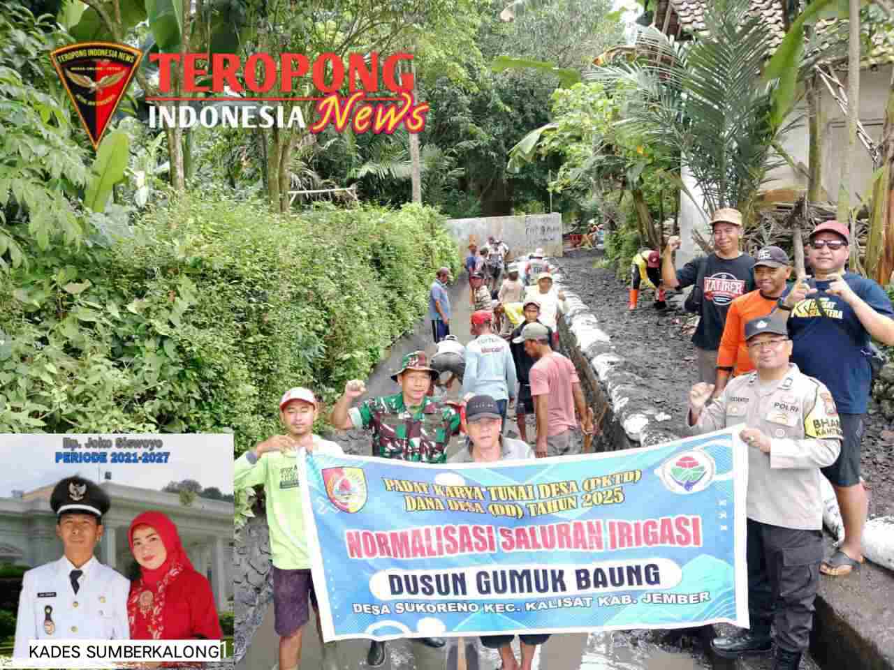 Jember – Tindakan Taktis kerja sama dalam mennanggapi bencana dari Dua Desa diantaranya Desa Sumber kalong dan Desa Sukoreno Kecamatan Kalisat Kabupaten Jember adalah tindakan yang benar – benar di acungi jempol, hal ini terbukti dengan adanya Normalisasi Saluran irigasi yang terletak di antara perbatasan dua Desa tersebut yaitu Dusun Gumuk BaungBaung – 10 Februari 2025.