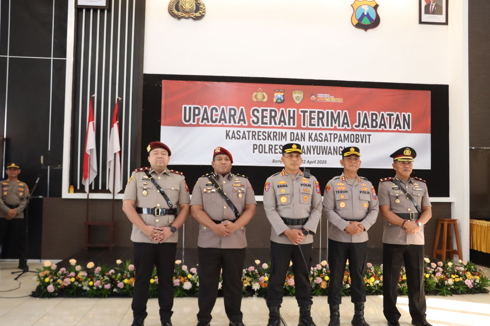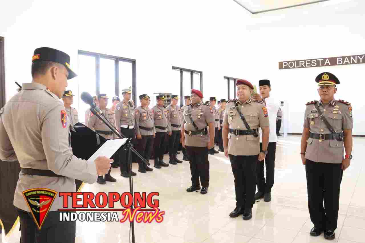BANYUWANGI – Polresta Banyuwangi menggelar upacara serah terima jabatan (sertijab) sejumlah pejabat pada Selasa pagi (22/4/25), bertempat di Gedung Rupatama Wira Pratama Polresta Banyuwangi.