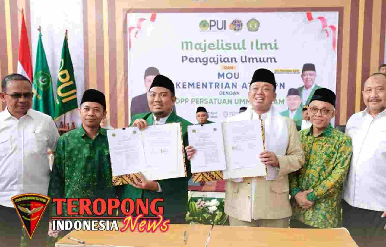 Kota Sukabumi – Menteri Agraria dan Tata Ruang/Kepala Badan Pertanahan Nasional (ATR/BPN), Nusron Wahid, menandatangani Nota Kesepahaman (MoU) yang meresmikan kerja sama dengan Dewan Pimpinan Pusat (DPP) Persatuan Ummat Islam (PUI), di Pondok Pesantren Syamsul ‘Ulum, Kota Sukabumi, Rabu (16/04/2025). Dalam sambutannya, Menteri Nusron menekankan pentingnya pemanfaatan tanah secara produktif untuk kemakmuran rakyat, termasuk tanah-tanah wakaf.