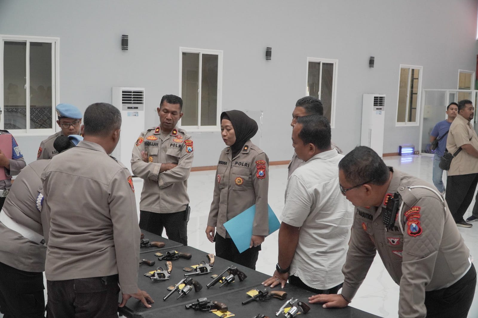 BLITAR – Dalam rangka memastikan kesiapan dan keamanan penggunaan senjata api di lingkungan kepolisian, Wakapolres Blitar Kompol Fadillah Langko. K. Panara melaksanakan kegiatan pengecekan senjata api (SENPI) genggam yang dimiliki oleh anggota Polres Blitar.