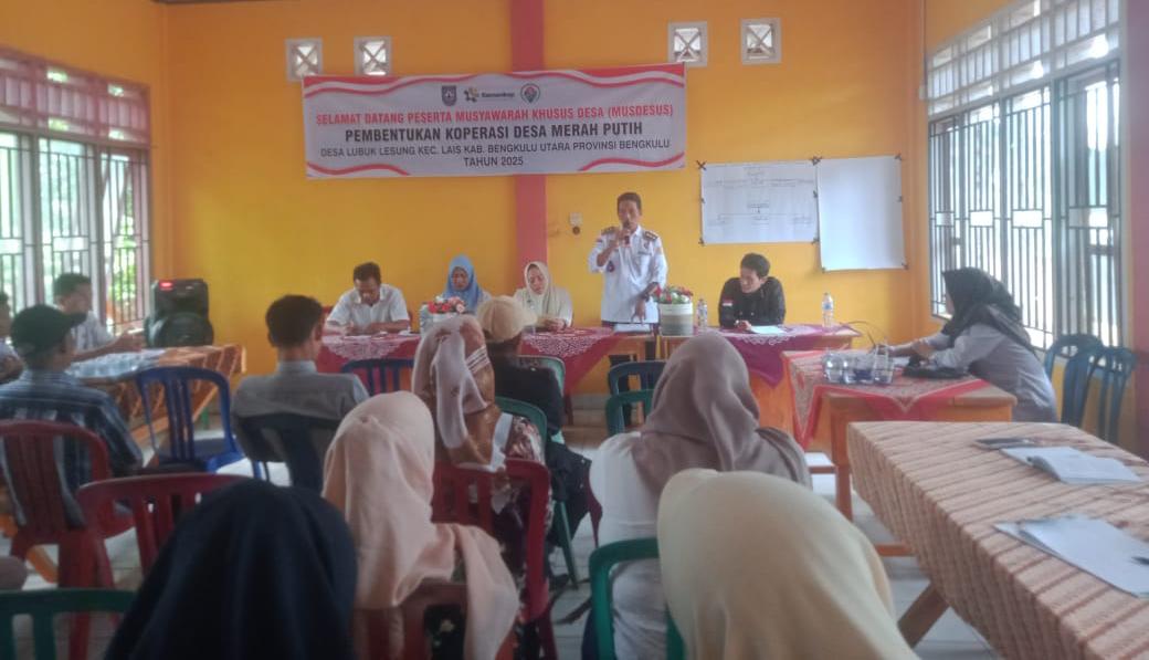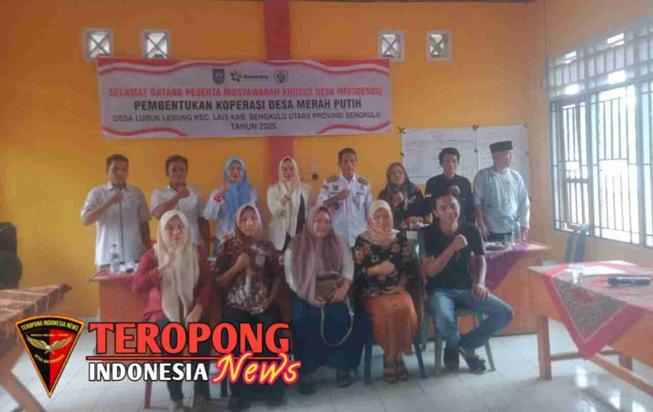 Bengkulu Utara – Desa Lubuk Lesung, Kabupaten Bengkulu Utara, resmi membentuk Koperasi Merah Putih Berkah Lubuk Lesung pada Musyawarah khusus Desa yang berlangsung Rabu, 30 April 2025.