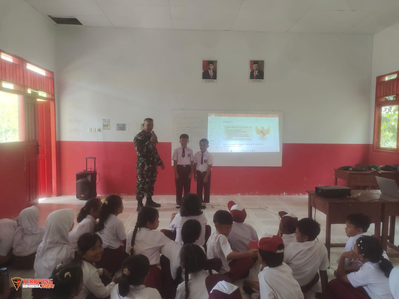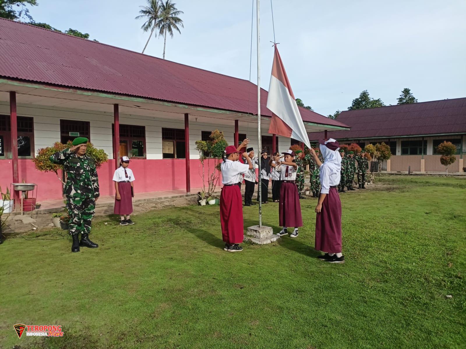BENGKULU UTARA – Penanamkan sikap nasionalisme untuk anak anak usia sekolah di wilayah pulau terluar, Satuan Tugas Pengamanan Pulau Terluar (Satgas Pam Puter) Enggano melaksanakan kegiatan Upacara Bendera dan dilanjutkan pemberian materi Wawasan Kebangsaan dan Bela Negara kepada pelajar di SDN 054 Desa Meok, Kecamatan Enggano, Kabupaten Bengkulu Utara.