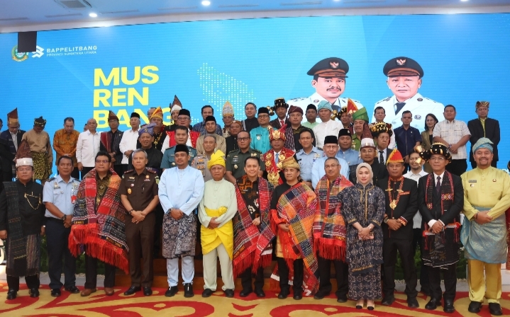 Dalam Musrenbang ini, ada satu hal yang cukup menarik yakni Gubernur Sumut, Bobby Nasution dan para kepala daerah (bupati/walikota) yang hadir, termasuk Bupati Tapsel, Gus Irawan Pasaribu mengenakan pakaian adat.