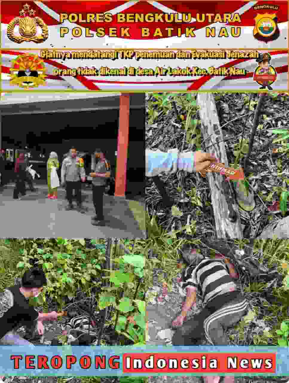 Personel Polsek Batik Nau melakukan pengamanan lokasi kejadian dan berkoordinasi dengan Tim Identifikasi Polres Bengkulu Utara untuk melakukan olah TKP. Mayat kemudian dievakuasi ke Rumah Sakit Lagita untuk pemeriksaan lebih lanjut.