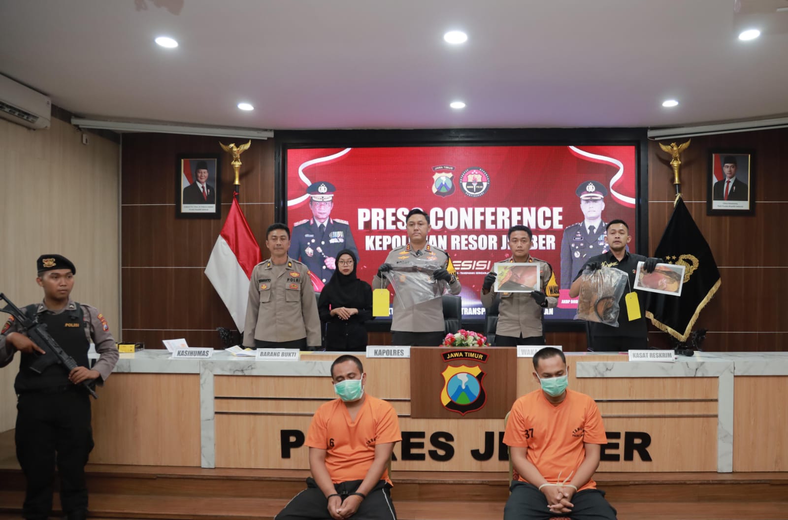Kapolres Jember AKBP Bobby A. Condroputra dalam keterangannya menjelaskan bahwa Dua dari Empat tersangka, yakni SB (35) dan SA (40), berhasil ditangkap setelah diketahui kembali ke Jember karena urusan keluarga.