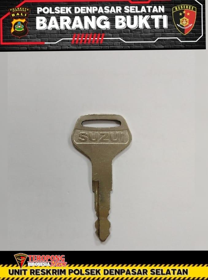Barang bukti yang diamankan meliputi satu unit sepeda motor Yamaha Mio warna kuning dan satu buah kunci palsu yang digunakan saat melakukan aksi pencurian.