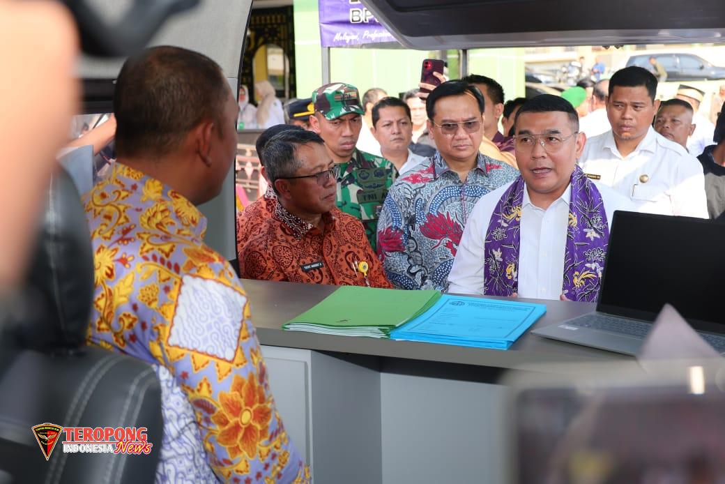 Kabupaten Tangerang – Wakil Menteri Agraria dan Tata Ruang/Wakil Kepala Badan Pertanahan Nasional (Wamen ATR/Waka BPN), Ossy Dermawan, meninjau Layanan Sertipikat Keliling yang digagas oleh Kantor Pertanahan (Kantah) Kabupaten Tangerang pada Rabu (23/07/2025). Layanan Sertipikat Keliling saat ini berada di halaman Kantor Kecamatan Kosambi, Kabupaten Tangerang.
