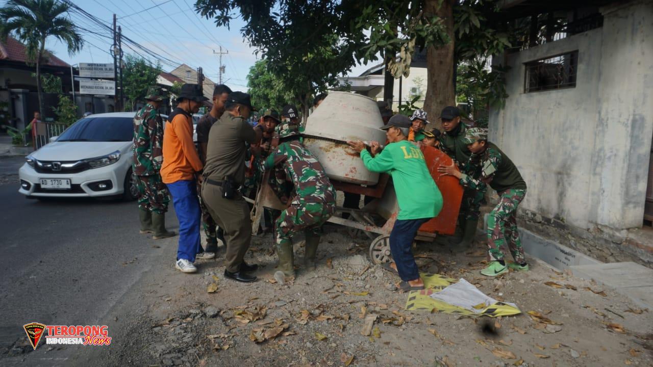 Semangat selalu tertanam pada segenap anggota TNI yang tergabung dalam Satgas TMMD Reguler ke-125 Kodim 0735/Surakarta, Dedikasi Terbaik membangun NKRI, bersama masyarakat di Kelurahan Karangasem, Kecamatan Laweyan,