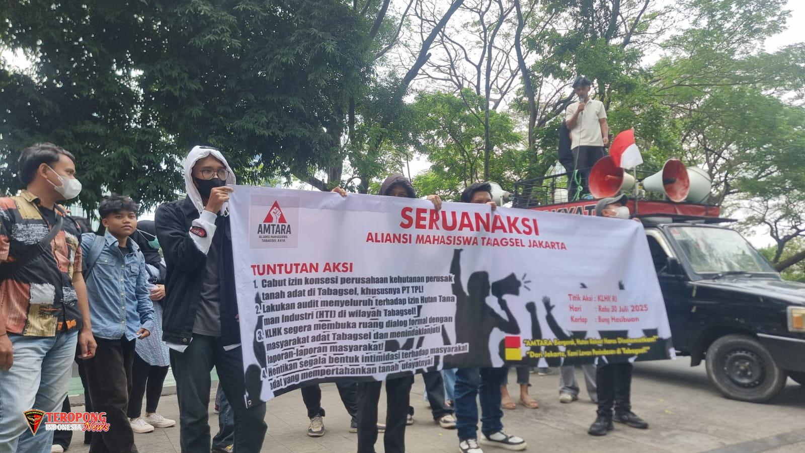 Jakarta, 30 Juli 2025 — Ratusan mahasiswa yang tergabung dalam Aliansi Mahasiswa Tabagsel Raya (AMTARA) menggelar aksi damai di depan gedung Kementerian Lingkungan Hidup dan Kehutanan Republik Indonesia (KLHK RI), Rabu (30/7/2025). Aksi ini merupakan bentuk protes atas maraknya dugaan perampasan tanah adat dan kerusakan lingkungan hidup di wilayah Tapanuli Bagian Selatan (Tabagsel), Sumatera Utara.
