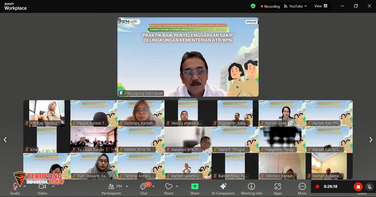 Webinar series keempat ini dimoderatori oleh Kepala Subbagian Pemantauan pada Biro Perencanaan dan Kerja Sama, Nugroho Dwi Rinaryanta. Peserta pada webinar ini meliputi pegawai Kementerian ATR/BPN dari berbagai unit kerja, baik pusat maupun daerah.