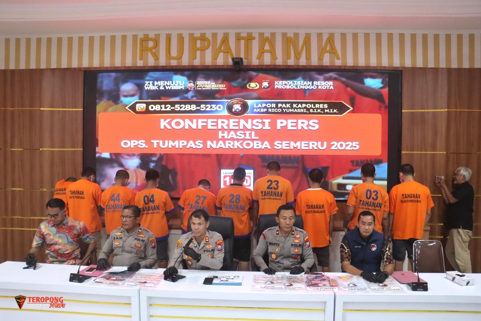KOTA PROBOLINGGO – Polres Probolinggo Kota, Polda Jatim menangkap sebanyak 10 orang tersangka kasus penyalahgunaan narkoba dari Operasi Tumpas Semeru 2025.