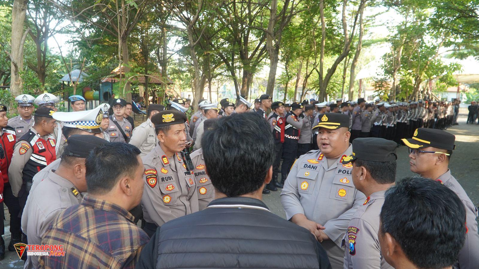 Apel persiapan pengamanan berlangsung di Bangkodir, Jl. Raden Ajeng Kartini, Bangil, dipimpin langsung oleh Kapolres Pasuruan, AKBP Jazuli Dani Iriawan, S.I.K., M.Tr.Opsla.