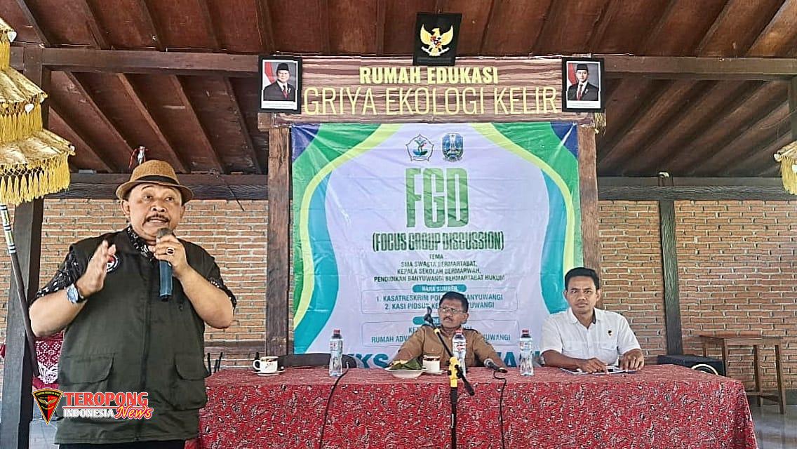 Acara menghadirkan narasumber Iptu Karyono Setyawan, S.H.MH., Kanit Pidkor Satreskrim Polresta Banyuwangi, serta Drs. Slamet Riyadi, M.Pd, Plt. Kepala Cabang Dinas Pendidikan Provinsi Jawa Timur Wilayah (Cabdindikprovwil) Banyuwangi. Diskusi dipandu oleh Hakim Said, S.H., Ketua Firma Hukum Rumah Advokasi Kebangsaan Banyuwangi (RAKB).