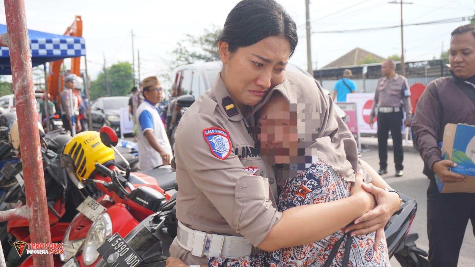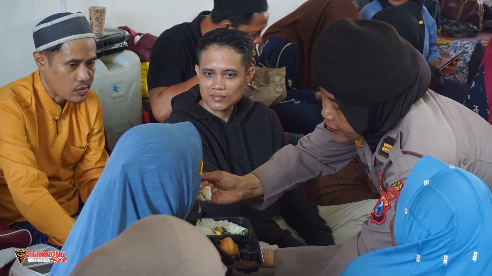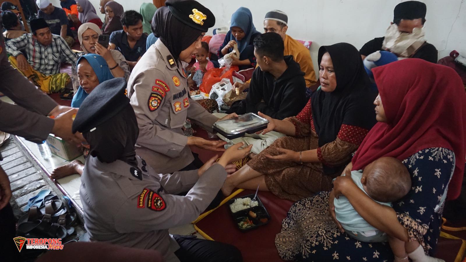 Selain memberikan trauma healing kepada keluarga korban, puluhan Polwan juga menyalurkan bantuan makanan bagi keluarga korban.