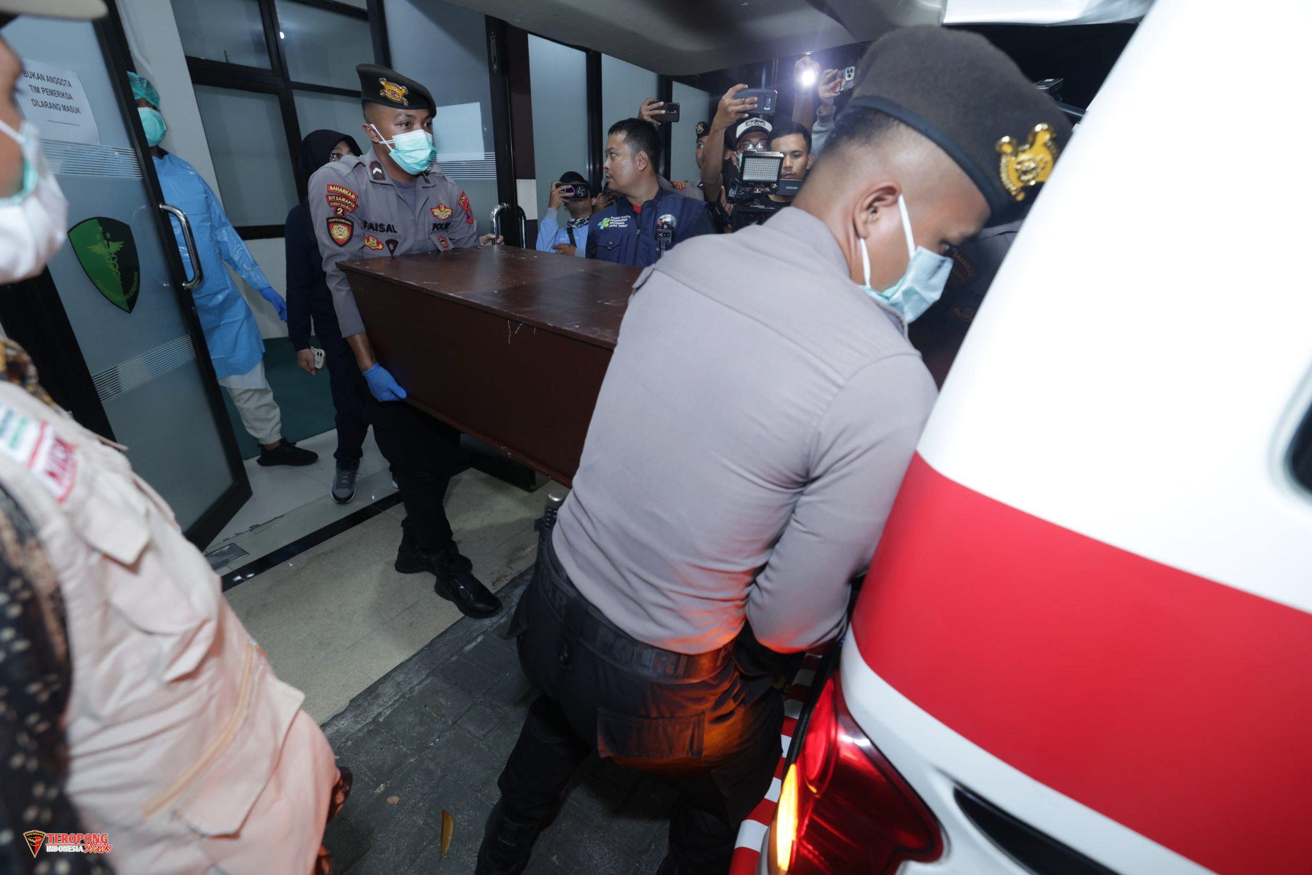 “Setelah disholatkan di RS Bhayangkara, peti jenazah dibawa menggunakan ambulans menuju rumah duka masing-masing,”kata Kombes Pol M.Khusnan.