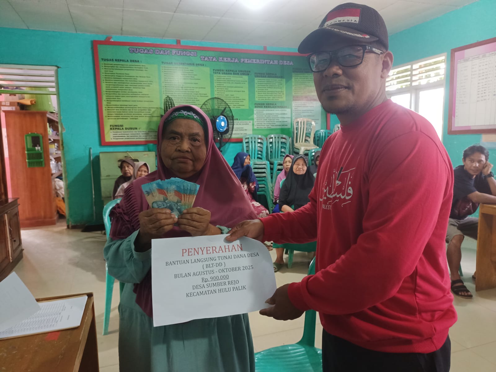 BENGKULU UTARA – Jum’at, 17 Oktober 2025 – Pemerintah Desa Sumber Rejo, kecamatan Hulu palik kabupaten bengkulu utara, menyalurkan bantuan BLT-DD Bulan Agustus – Oktober, Acara yang dilaksanakan di Aula Desa Sumber Rejo berjalan dengan lancar dan tertib, pemerintah Desa Sumber Rejo memberikan bantuan langsung tunai kepada 26 keluarga penerima manfa’at (KPM).