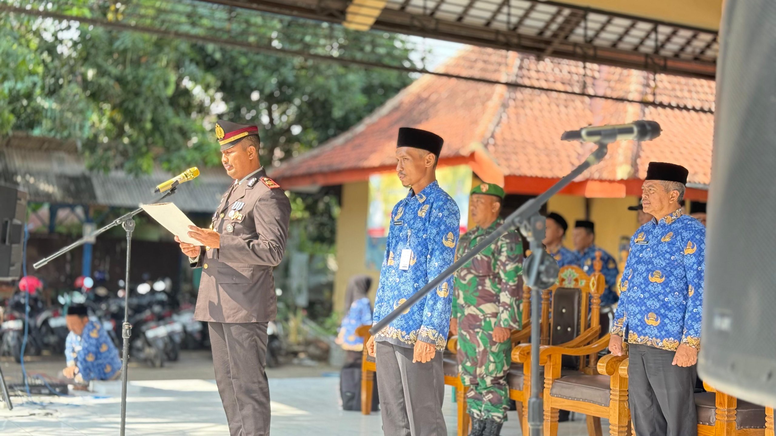 Peringatan bersejarah ini turut dihadiri oleh berbagai tokoh penting dan elemen masyarakat Kecamatan Krejengan, menunjukkan soliditas antarinstansi. Tampak hadir Bapak Camat Krejengan, Bangbang Hary Wahyudi, S.Sos., M.Si, yang kehadirannya senantiasa menjadi penyemangat. Selain itu, Danramil Krejengan diwakili oleh Sertu Imron, serta Kepala Puskesmas Krejengan, Nurul Avif Dwi Sukmana,S.Kep., Ns., M.Kes, turut memperkuat barisan.