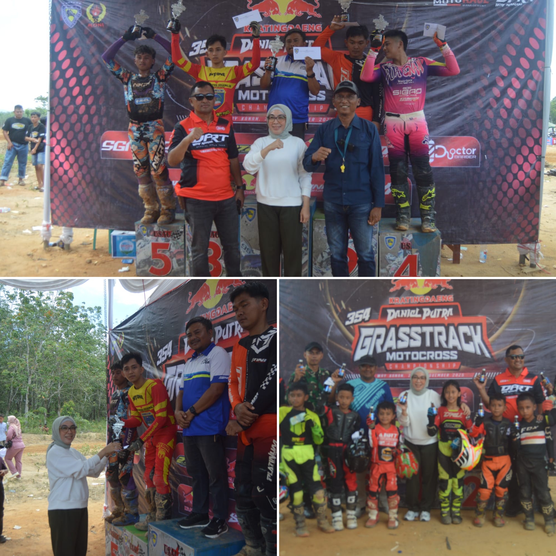 Blambangan Umpu – Bupati Ayu Asalasiyah,S.Ked, secara resmi membuka dan melepas ratusan pembalap mengikuti Kejuaraan Grastrack Motor Cross Daniel Putra 354 Championship di Sircuit setempat di Sp3, Umpu Kencana, Blambangan Umpu, Kabupaten Way Kanan, Lampung, Minggu (30/11/2025).