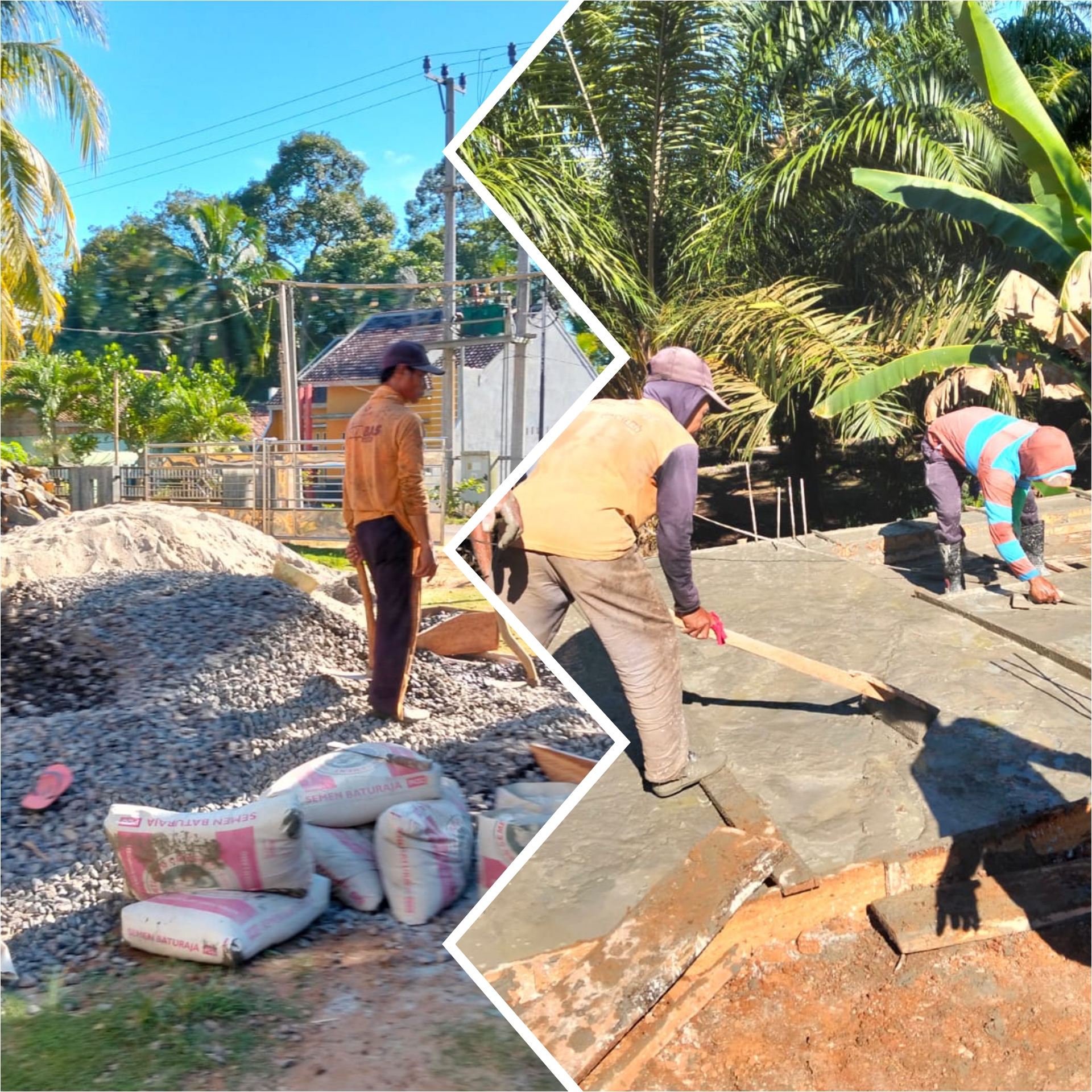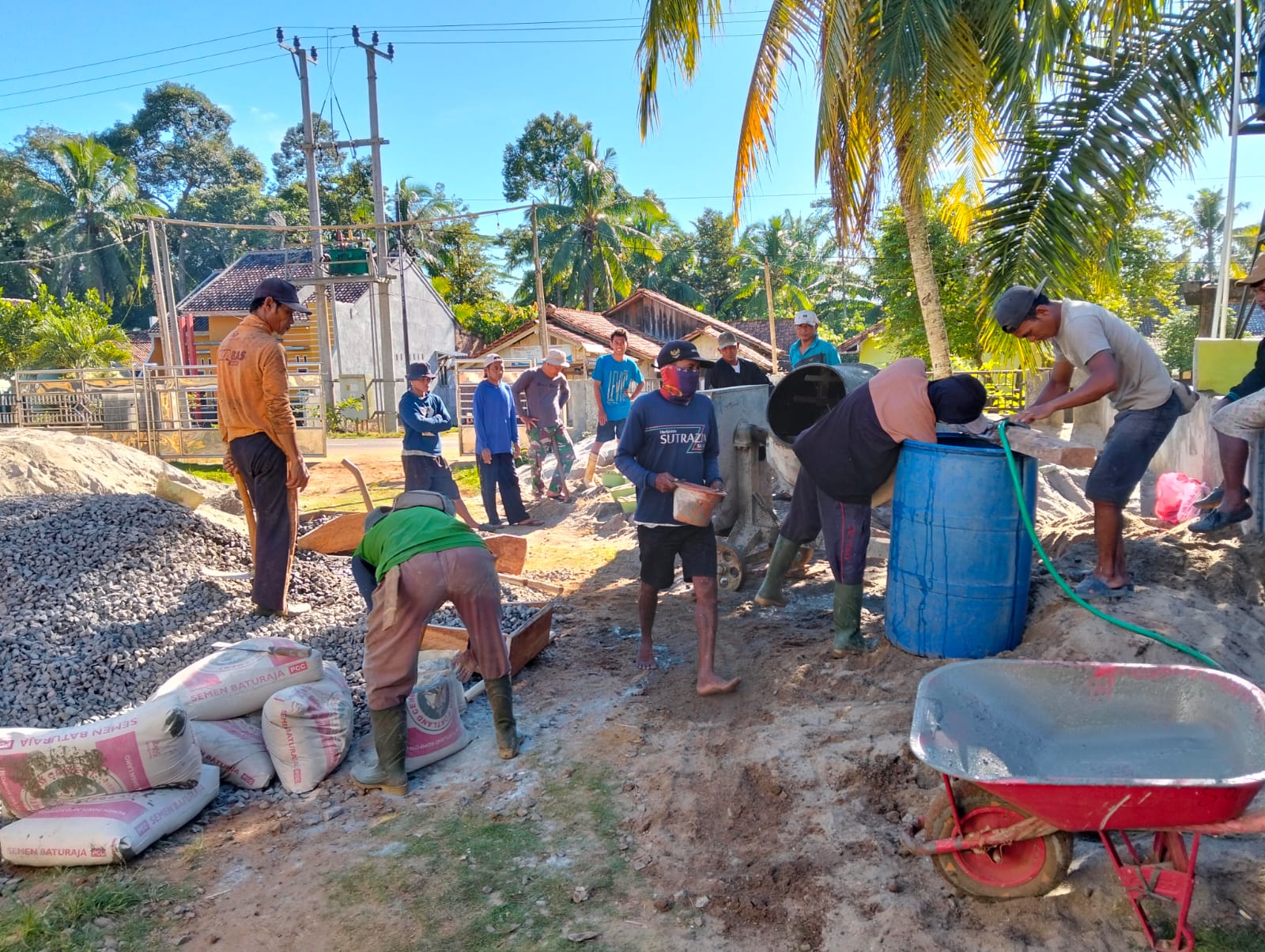 WAY KANAN – Meski di hari libur,Mat Sudirman Kepala Kampung Madang Jaya Kecamatan Rebang Tangkas Kabupaten Waykanan mengajak dan pimpin langsung gotong royong bersama warga Dusun 01 dan Dusun 05 beserta Aparatur Kampung nya bergotong royong,gotong royong kali ini di fokus kan mengecor Masjid Nurul Huda yang berlokasi di Dusun 01 Kampung Madang Jaya Kecamatan Rebang Tangkas,Minggu 30/11/2025.