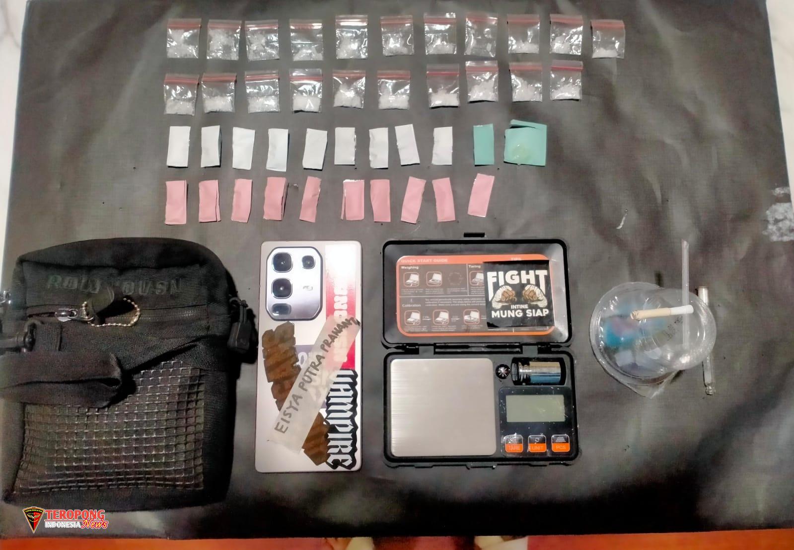 Selain itu, turut diamankan sejumlah barang bukti lain seperti alat hisap, pipet kaca, timbangan digital, hingga ponsel yang diduga digunakan untuk transaksi.