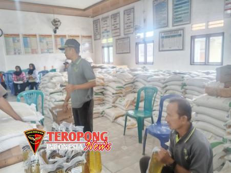 Pembagian bantuan beras dilakukan langsung oleh Kepala Desa Sukadadi, Rudi Maryoto, bersama perangkat desa pada Rabu (08/04/2026).