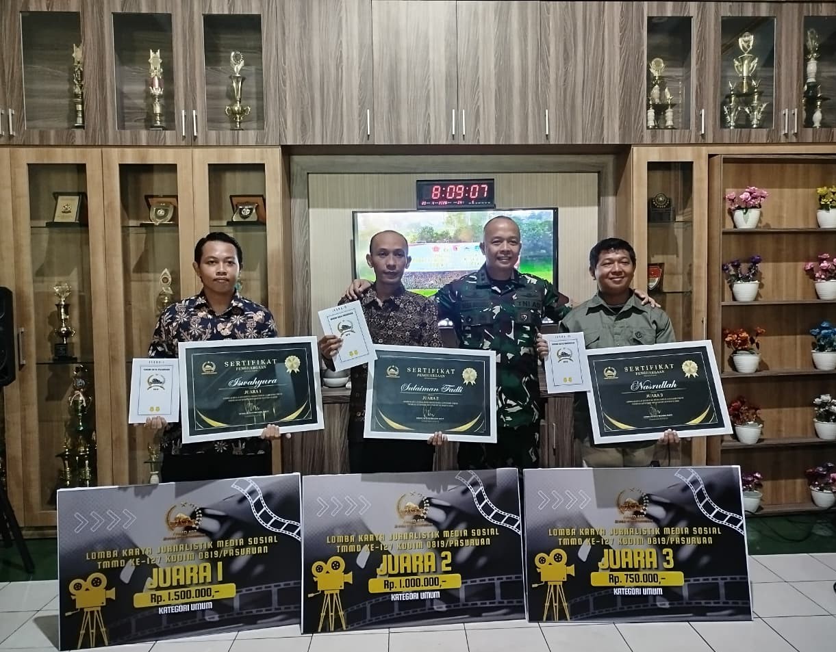 PASURUAN – Program TNI Manunggal Membangun Desa (TMMD) ke-127 Kodim 0819 Pasuruan tidak hanya fokus pada pembangunan infrastruktur fisik, tetapi juga berhasil menggali potensi kreativitas generasi muda melalui ajang Lomba Karya Jurnalistik dan Publikasi Media Sosial.